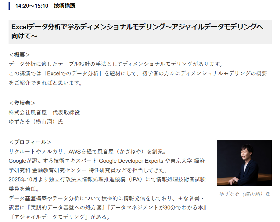 特定非営利法人 UMLモデリング推進協議会(UMTP)様が主催する「Modeling Forum 2025 AI時代のシン・データモデリングとは」に、当社代表・横山(ハンドルネーム:ゆずたそ)が登壇し、技術講演を行います。